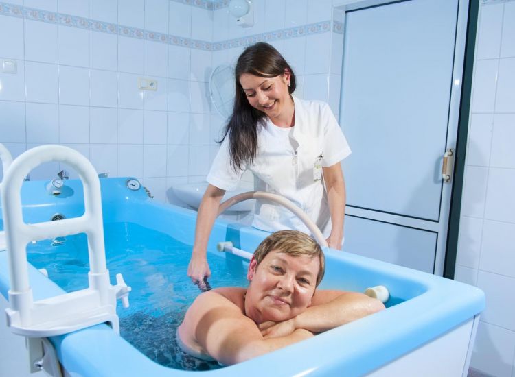 The procedure is performed in a bathtub in therapeutic thermal water by a physiotherapist using a stream of water at a pressure of 1-4 atmospheres. The treatment is performed on the entire body of the patient.